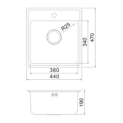 Secher Vejle 380 BK1 køkkenvask 440 x 470 mm. Rustfrit stål