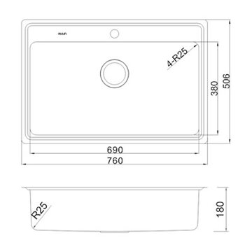 Secher Vejle 700 BK1 stål vask t/køkken 760 x 506 mm. Rustfrit stål