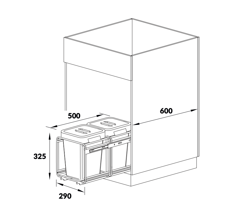 • Inkl. 2 funktionelle spande à 11 l med låg og ergonomisk greb (H x B x D: 325 x 290 x 500 mm)