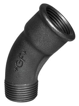 Sort bøjning muffe/nippel 1/2" - 45 grader