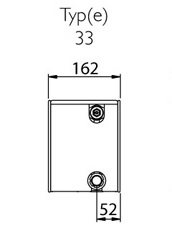 Stelrad PLANAR PLINTH D type 33 lavkonvektor radiator. Type 33 betyder, at radiatoren har tre plader med en total dybde på 162 mm. Radiatoren er ens på begge sider, altså helt glat og derfor også vendbar. Den har 6 x ½ "standard (2 x ½" nedadvente anboringer i bunden)