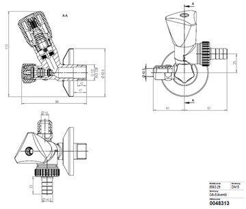 Stopventil 1/2" x 10 mm m/aftap til højre m/studs