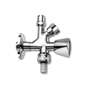 Stopventil 1/2" - 10 mm, med ekstra 3/4" udv. gevind for tilslutning af opvaskemaskine. VVS-nr. 744426.023