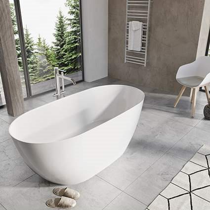 Strømberg Arden fritstående badekar - Materiale Velsten - helstøbt støbemarmor, den er mat hvid 1600x740