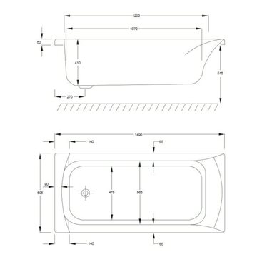 Strømberg Delta Badekar til Indbygning 150x70 cm -