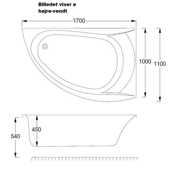 Strømberg Omega hjørnekar 1700x1000 mm - Ryglæn i højre side