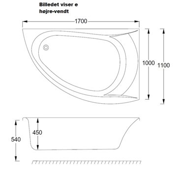 Strømberg Omega hjørnekar 1700x1000 mm  - Ryglæn i højre side - Højre-vendt