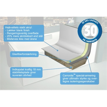 Carronite processen skaber et badekar i akryl, som besidder den styrke, pålidelighed, hårdførhed og de egenskaber, man normalt forbinder med et badekar i støbejern.
