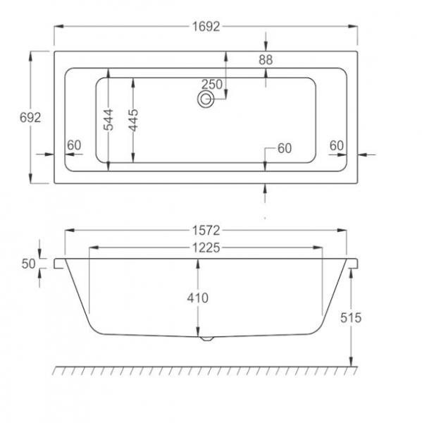 Strømberg Quantum Badekar, to ryglæn, rektangulært - 1700x700 mm - Carronite