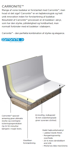 Carronite badekar er dobbelt så stærke som almindelige badekar og bevarer badevandstemperaturen betydeligt længere.