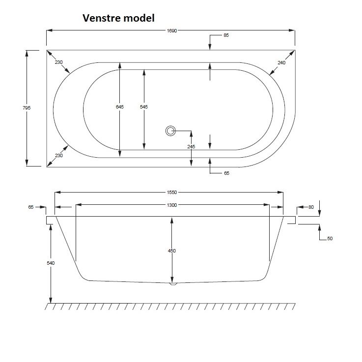 Strømberg Status rektangulært badekar 1700x800 mm - Ryglæn i venstre side - afrundet i højre side