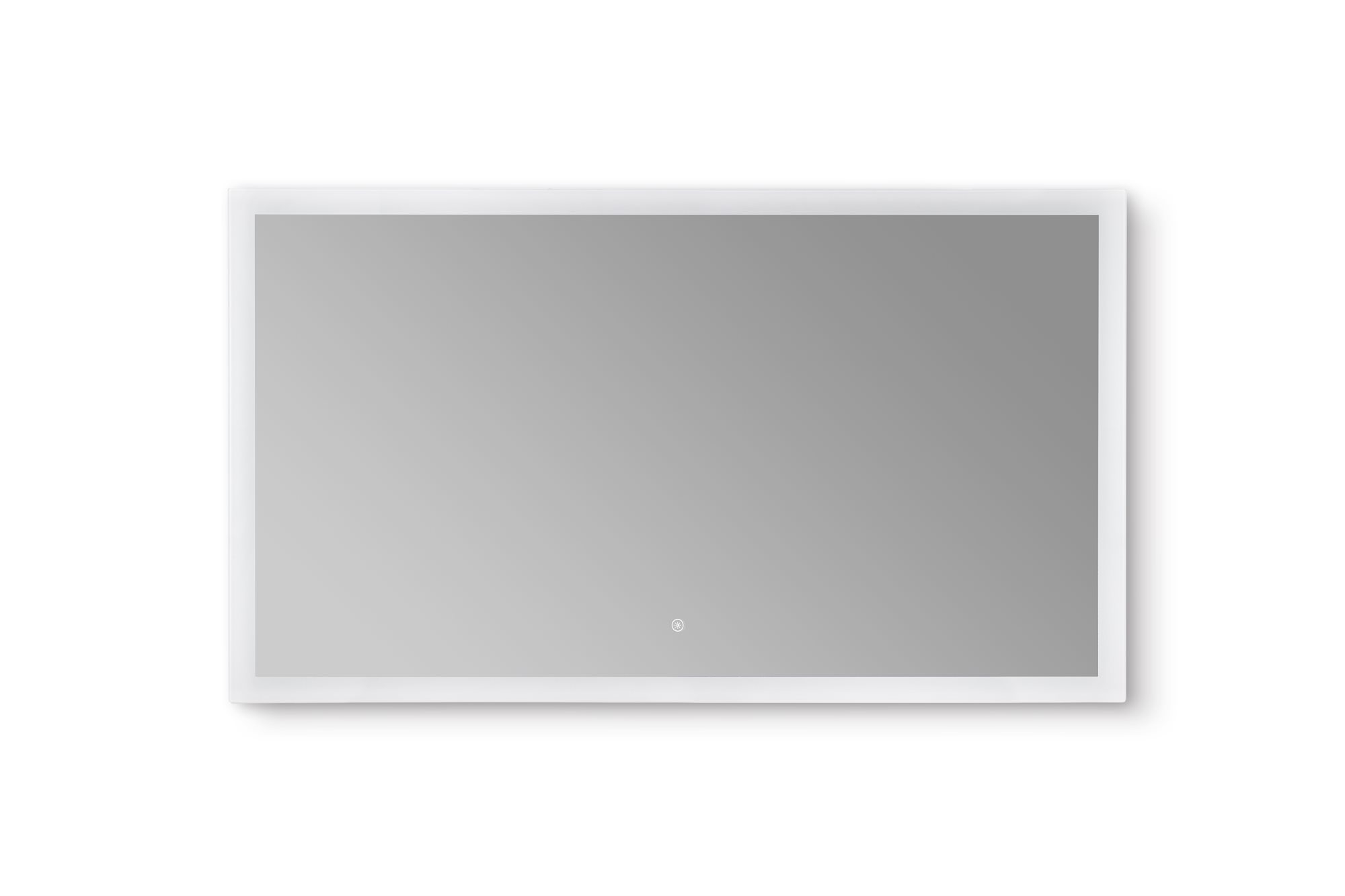 Dette rektangulært spejl har rene linjer, der passer perfekt på enhver væg. Det er et rammeløst spejl med en 40 mm sandblæst kant, der tillader lyset at komme igennem, hvilket giver jævnt et lys for beskueren og stråler ud i rummet på alle sider.