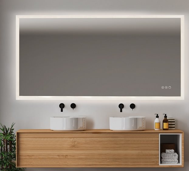 SUNRISE-3 spejl med integreret LED lys, front and back med lysstyring (justerbar farve & lysstyrke) samt anti-dug - 160x80 cm