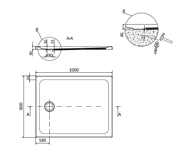 TAKO by ECO-LINE Rektangulær brusekar 100 x 80 x 4 cm til placering på gulv