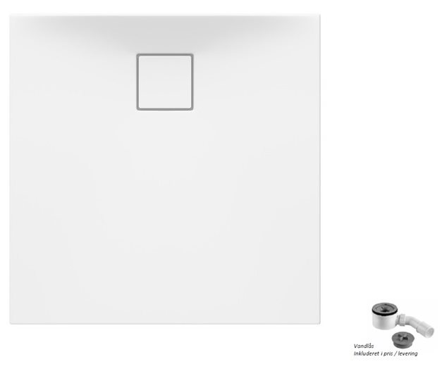 TAKO Slim brusebund 90x90x4 cm, plan med gulv eller ovenpå gulv