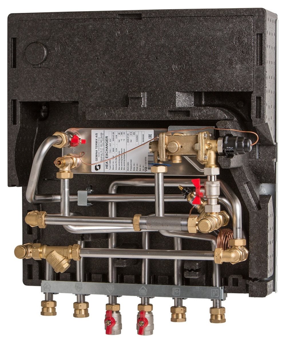 Termix VMTD er en komplet og monteringsklar fjernvarmeunit til direkte forsyning af rumvarme og varmt brugsvand.
