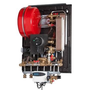 Termix VVX med den intelligente tpv-regulator og fuldisolering er en komplet fjernvarmeinstallation til indirekte forsyning med indbygget vandvarmer og varmeveksler for rumopvarmning