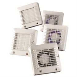 Støjsvage ventilatorer til baderum, toiletter og andre mindre rum. Direkte udsugning gennem væg, loft eller kanal. Disse ventilatorer kan leveres i flere udførelser: Bl.a. automatisk åbning og lukning af indvendigt jalousi samt med elektronisk timer (8 min.).