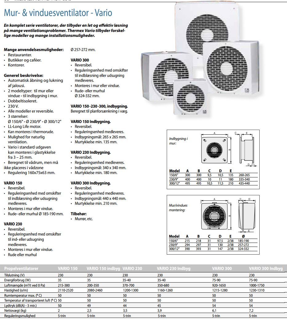 Thermex Vario 300/12 R mur/vinduesventilator inkl. regulering