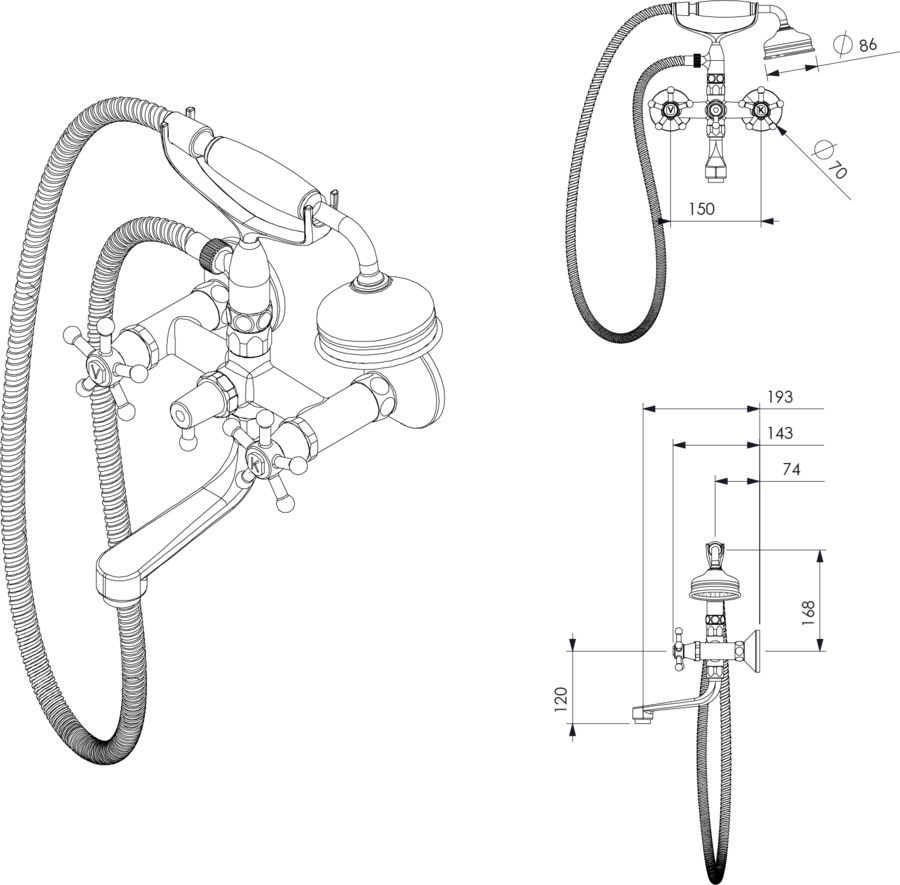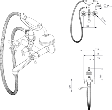 - kartud 120 mm - total fremspring fra færdig væg 195 mm