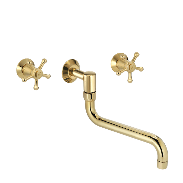 TONI Copenhagen Christiansborg indbygnings køkkenarmatur  med S200 mm tud i messing, for pex tilslutning til montering i væggen.