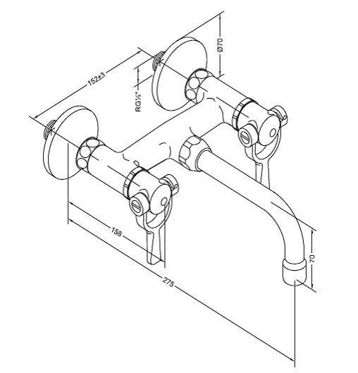 Centerafstand mellem rør er 152 mm (udtag i væggen) Dette er et standard mål i Danmark.