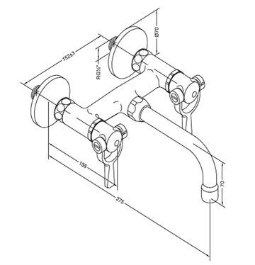 TONI Copenhagen Christiansborg Lægevaskbatteri med V 150mm tud i messing.