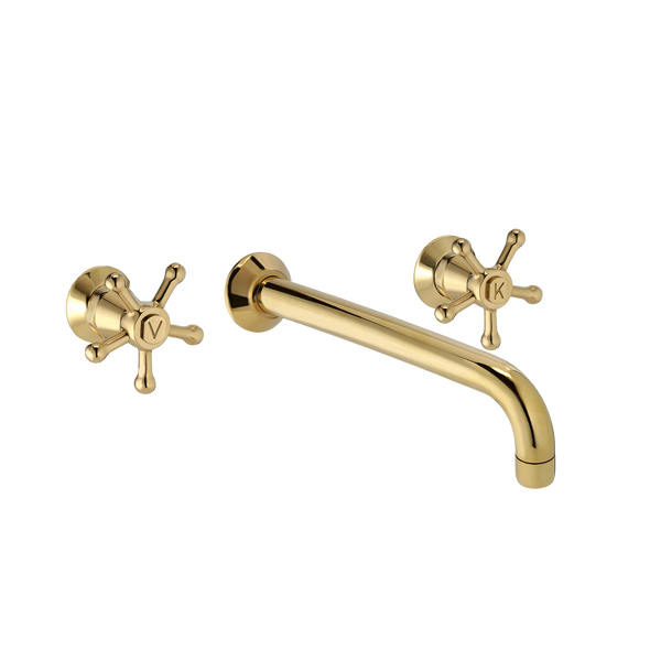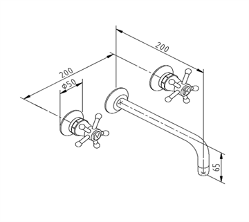 Christiansborg indbygningsbatteri til håndvask i messing, leveres komplet med indbygningsdel og lækagesikringer, Christiansborg greb med keramiske ventiler samt 200 mm fast tud.