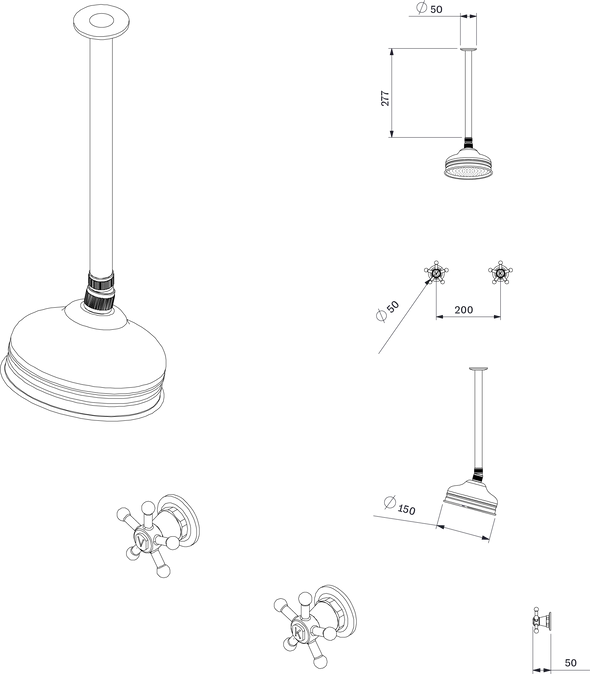 TONI Copenhagen Christiansborg brusearmatur for indbygning med lofts monteret hovedbruser