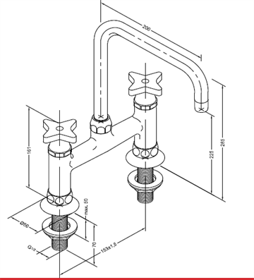 TONI Copenhagen Christiansborg 2 huls køkkenarmatur med 200 mm svingtud og lodrette greb