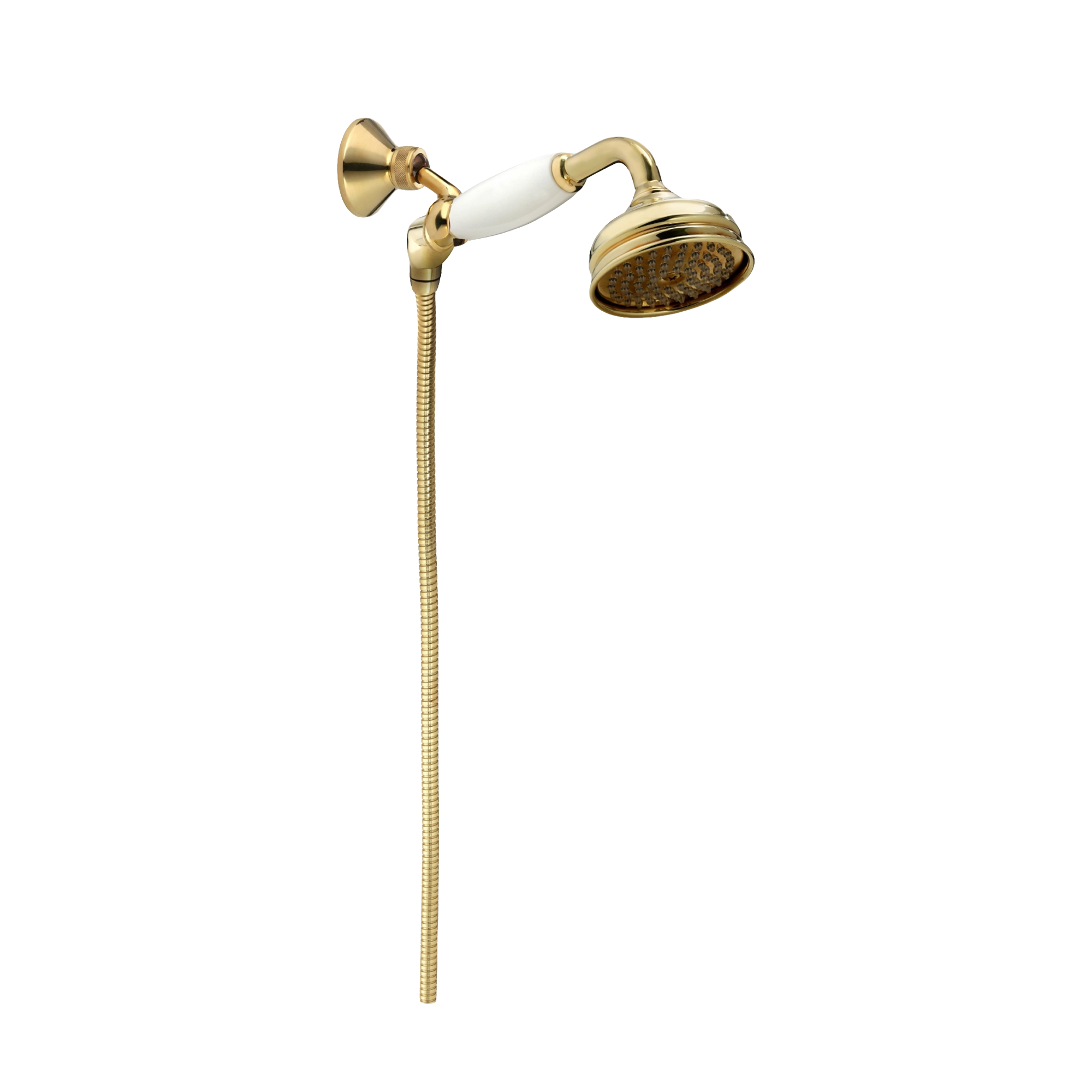 Toni Gammeldags håndbrusesæt med justerbar kugleledsholder og metal bruseslange.