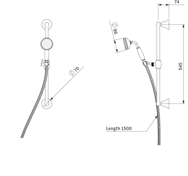 Toni Gl. dags håndbrusesæt komplet med glidestang, håndbruser og slange op 1,5 meter