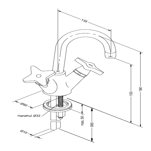 TONI Copenhagen Krydsgreb leveres med keramiske ventiler og fleksible tilslutningsslanger med 3/8" omløbere.