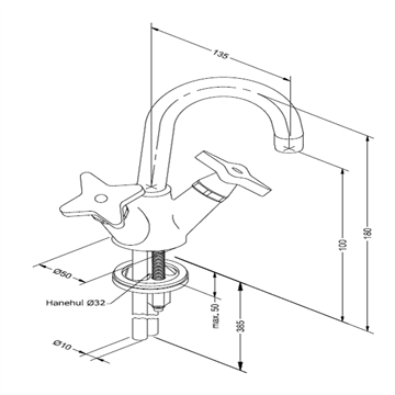 TONI Copenhagen Krydsgreb håndvaskbatteri uden bundventil
