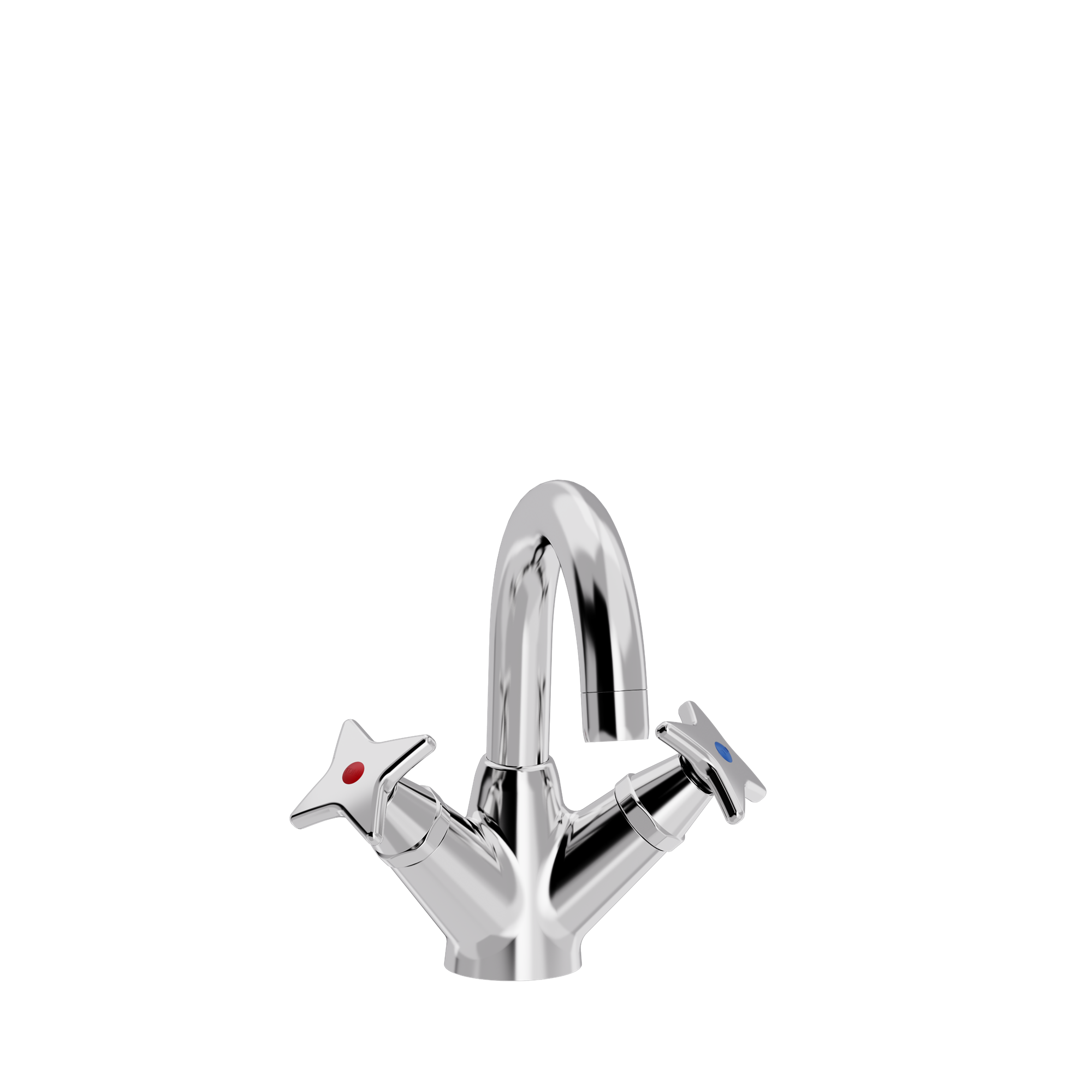 TONI Copenhagen Krydsgreb håndvaskbatteri uden bundventil, med fast tud 135 mm fremspring - krom.