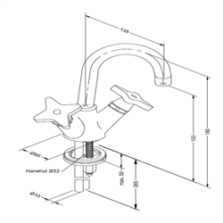 TONI Copenhagen Krydsgreb håndvaskbatteri uden bundventil, med fast tud 140 mm fremspring - krom.