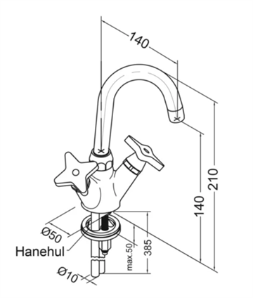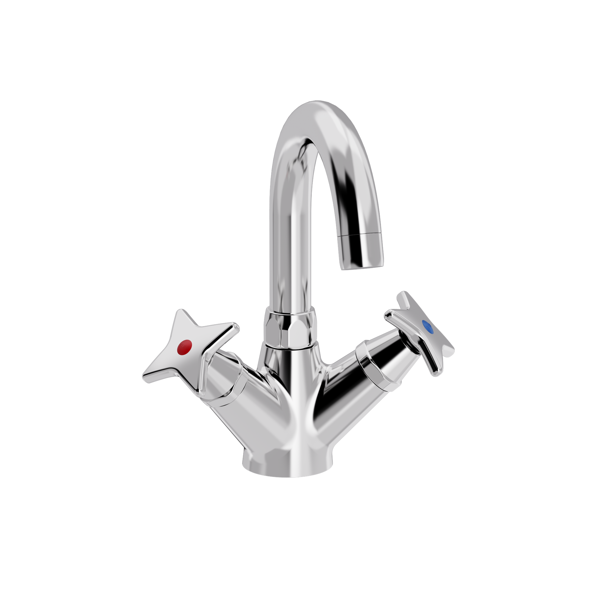 TONI Copenhagen Krydsgreb håndvaskbatteri med svingtud, uden bundventil - Svingtuden har et fremspring på 140 mm
