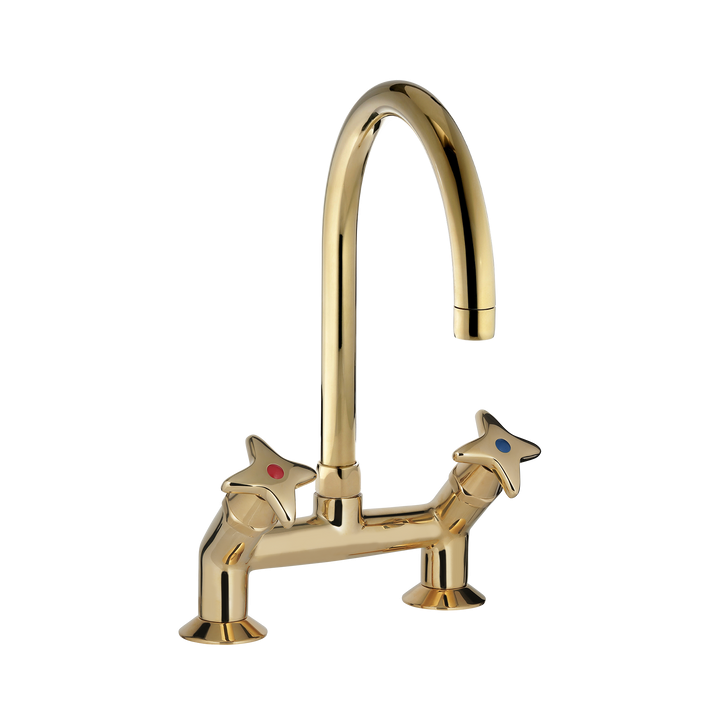 TONI Copenhagen Krydsgreb 2-huls køkkenbatteri Ø200 svingtud - Messing - 20.523-Ø200.555