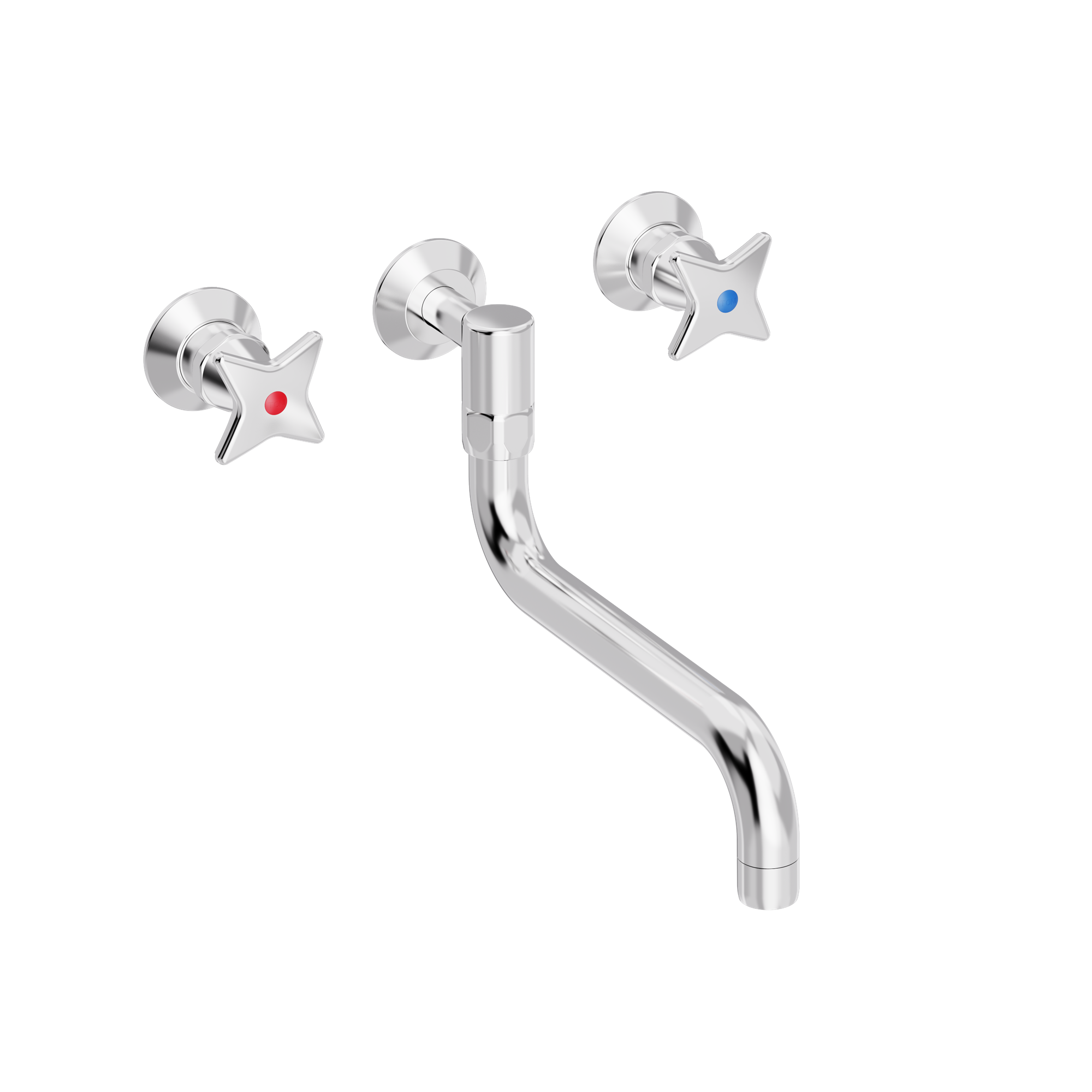 TONI Copenhagen Krydsgreb indbygnings køkkenarmatur i krom med S200mm tud ,for pex tilslutning til montering i væggen.