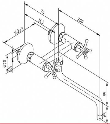 TONI Copenhagen Krydsgreb påbygnings køkkenarmatur i krom med S200mm tud ,for pex tilslutning til montering på væggen.