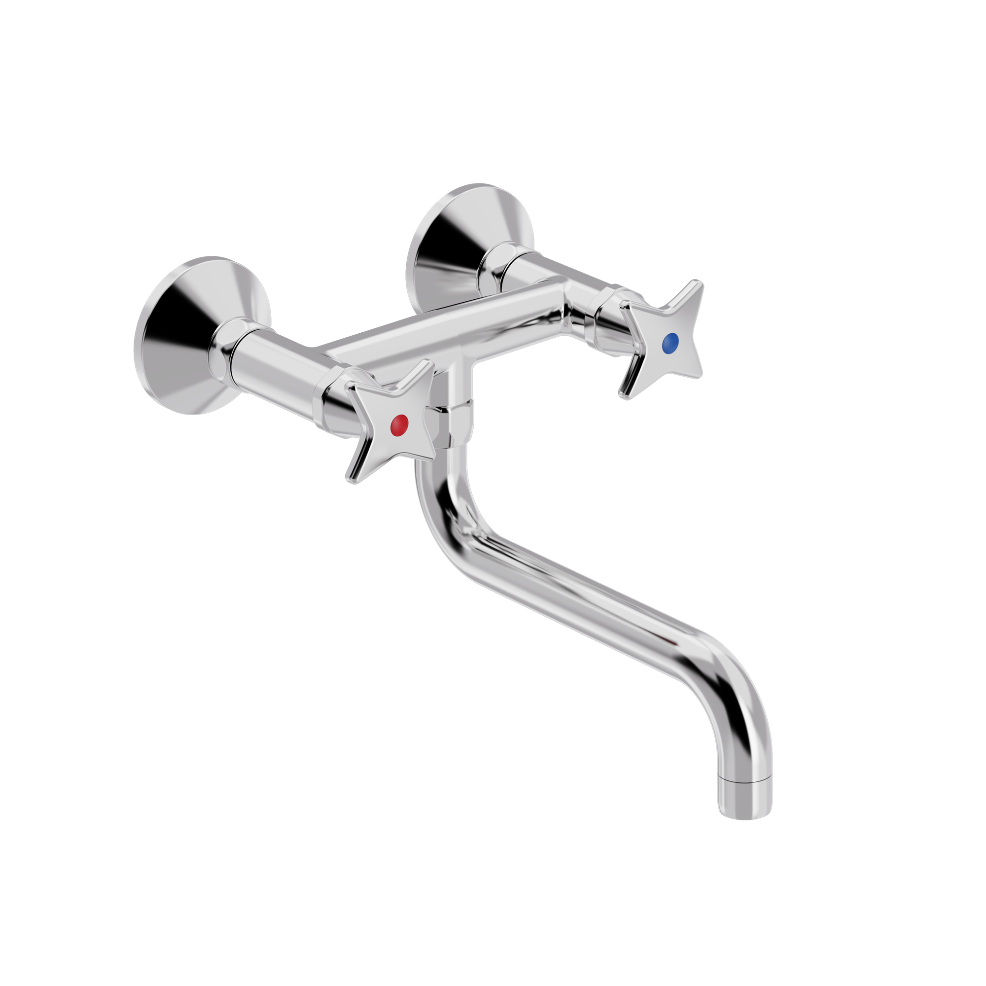 TONI Copenhagen Krydsgreb påbygnings køkkenarmatur i krom med S200mm tud ,for pex tilslutning til montering på væggen