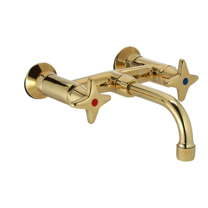 TONI Copenhagen Krydsgreb håndvaskbatteri med 150 mm fast tud til på bygning på væg.