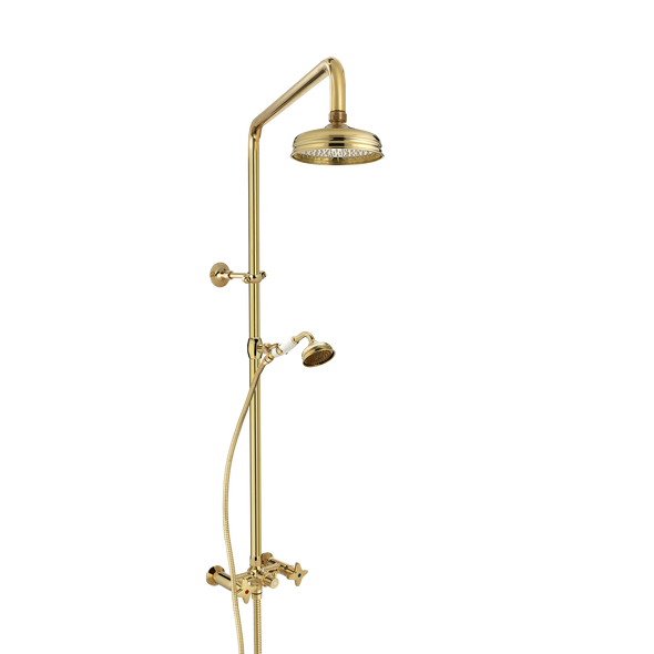 TONI Copenhagen Krydsgrebs Brusebatteri med hoved- & håndbruser i messing natur - danner med tiden patina og får et mere rustikt udseende ligesom antikviteter.