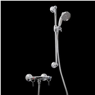 Armaturet leveres med gliderstang 545 mm, håndbruser med med gummidutter - lad det varme vand løbe lidt og "nuller" så dutten så falder kalken af. Samt bruseslange 150 mm