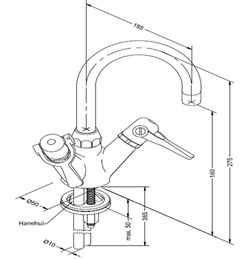 TONI Copenhagen SP grebet, vipperen eller stigebøjegrebet, leveres med spindler og pakninger samt fleksible tilslutningsslanger med 3/8" omløbere.