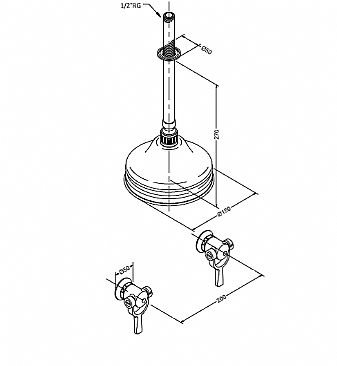 TONI Copenhagen SP brusearmatur for indbygning med lofts monteret hovedbruser Ø220 mm