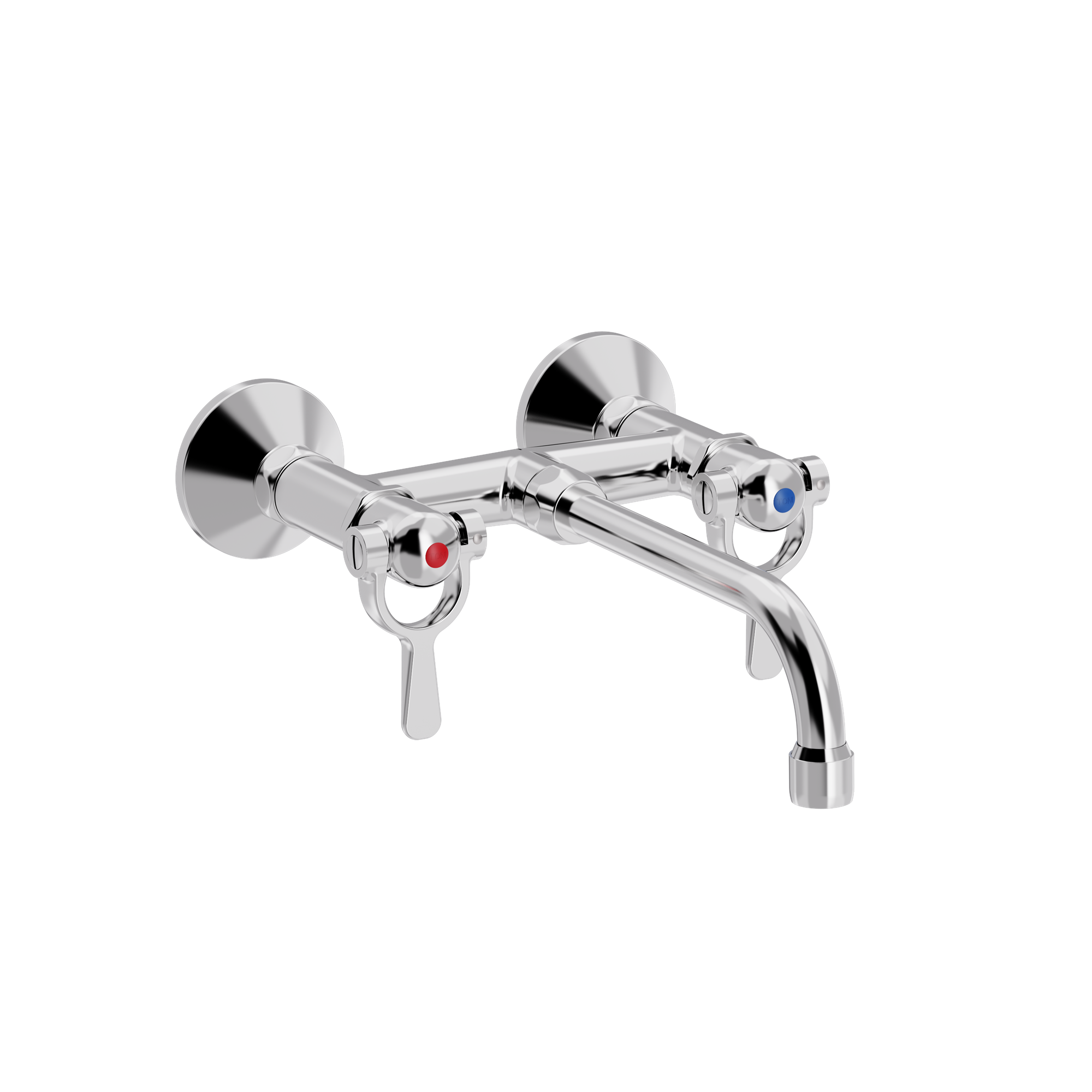 Tuden er fast og armaturet med læge greb er til påbygning på væg og det leveres uden bundventil.