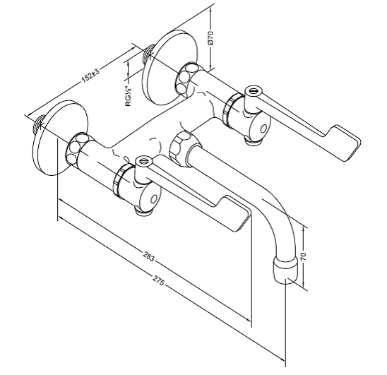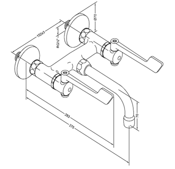 Centerafstand mellem rør 152 mm (udtag i væggen) Dette er et standard mål i Danmark.