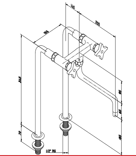 TONI Copenhagen SP køkkenarmatur på standere med S 200mm tud i messing