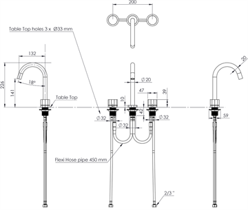 Toni Déca 3-huls armatur, bruneret messing ø132-tud
